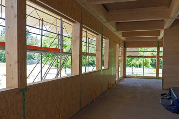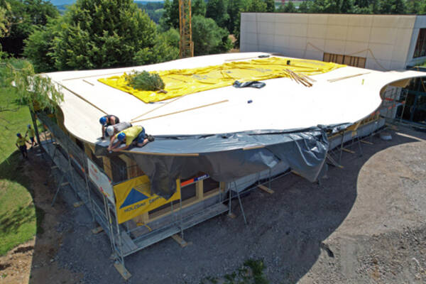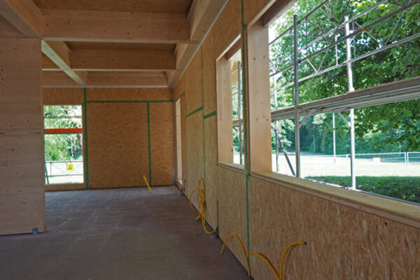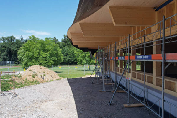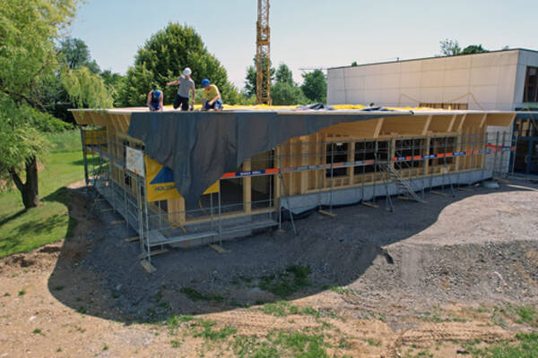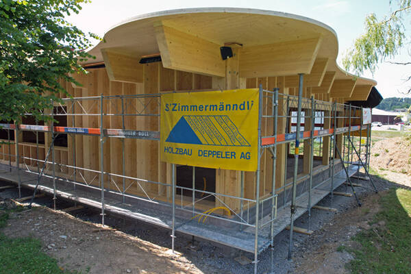Unser neuestes Projekt der Neubau der Kochschule an der Bezirksschule Leuggern macht grosse Fortschritte. Gerade durch den Einsatz von vorgefertigten Holzbau-Elementen kann eine schnelle und wettersichere Aufrichtungen sicher gestellt werden.